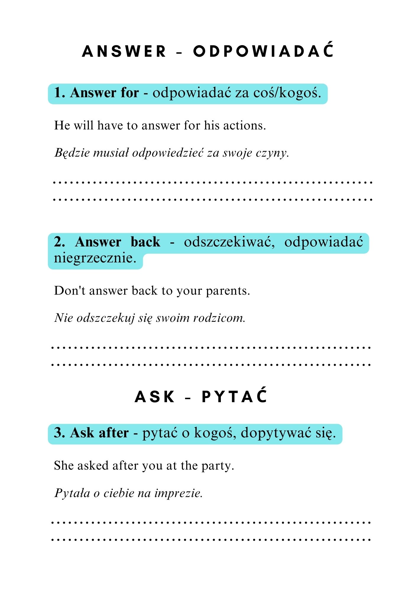– miejsce na własne przykłady, które ułatwią zapamiętywanie nowych fraz